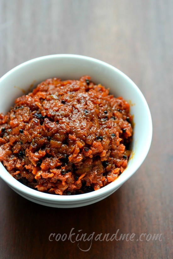 Cut mango,Turmeric,red chilli powder,salt,asafoetida,mustard,fenugreek,bengal gram,oil
