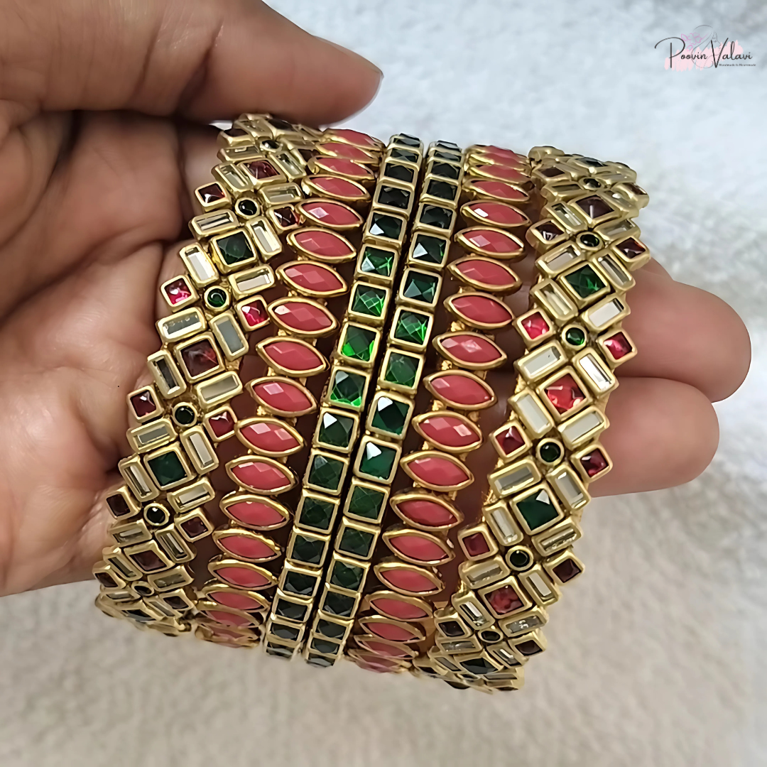 At Poovin Valavi, we specialize in handcrafted Kundan bangles and hair accessories tailored to match your outfits. Each piece is made to your unique specifications, ensuring a perfect fit and style. For personalized designs, contact us on  Instagram