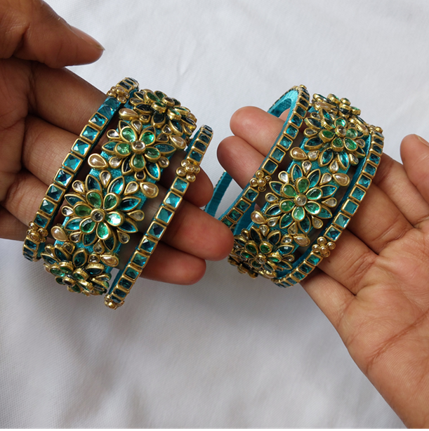 At Poovin Valavi, we specialize in handcrafted Kundan bangles and hair accessories tailored to match your outfits. Each piece is made to your unique specifications, ensuring a perfect fit and style. For personalized designs, contact us on  Instagram