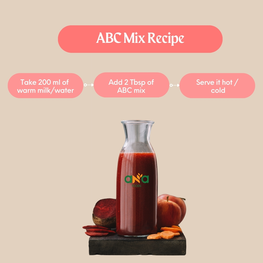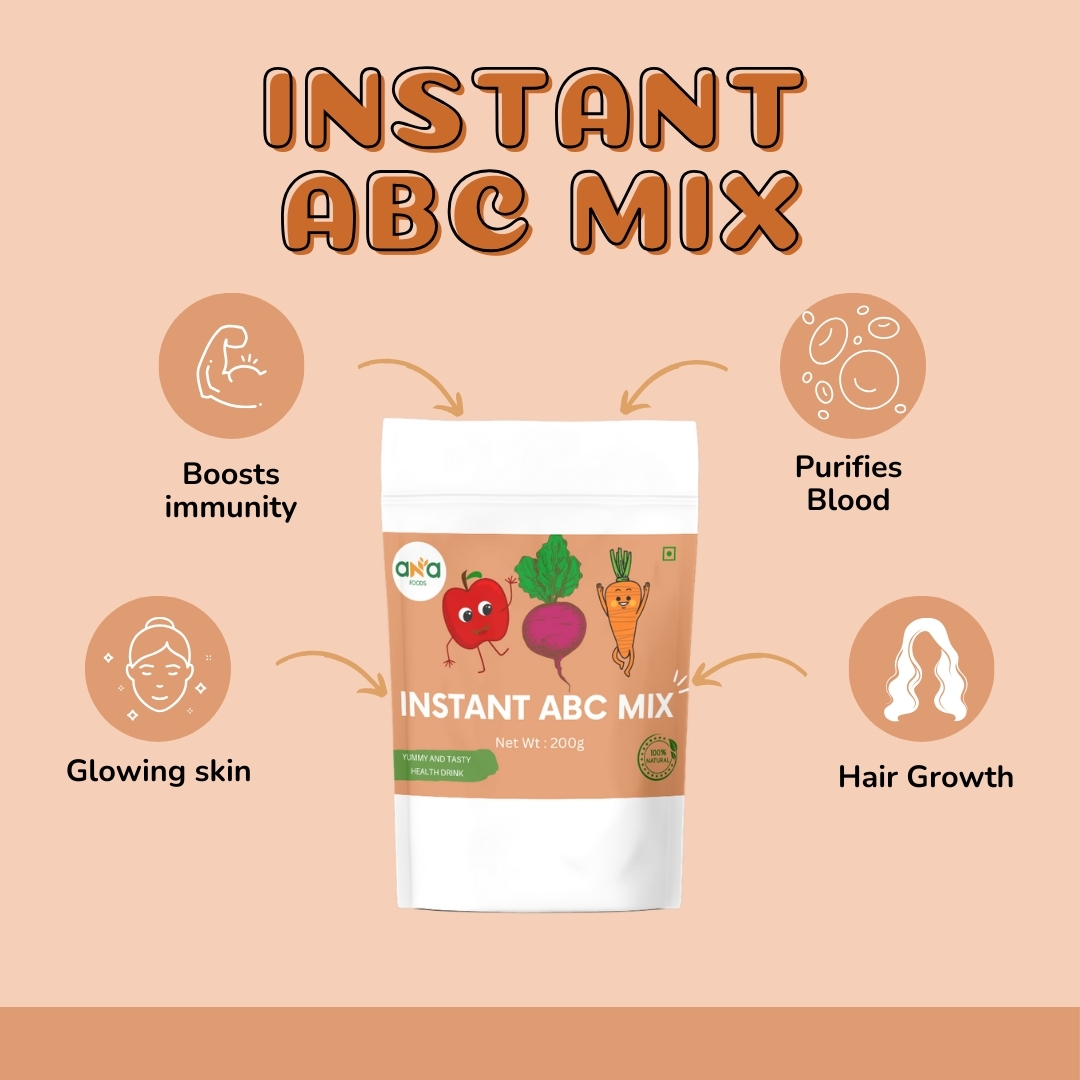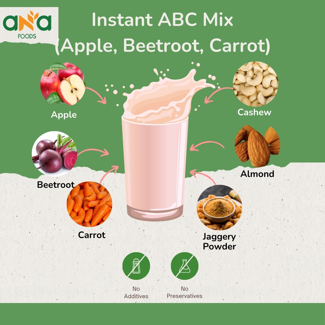 Ever heard of a magic mix that’s not only delicious but also packed with nutrients? Introducing Ana Foods Instant ABC Mix – a blend of fresh Apple, Beetroot, Carrot, Pure Jaggery Powder, and nuts.