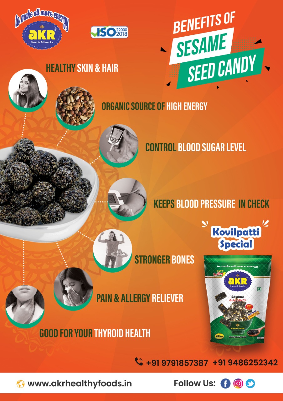 llu Mittai / Sesame Burfi is a crunchy and nutty sweet made primarily with sesame seeds and Jaggery. Ellu Mittai is called by some different names Sesame burfi, Sesame candy, Sesame chikki/balls. This candy is eatable by all aged people, especially for children. All our products are freshly prepared, packed and delivered.